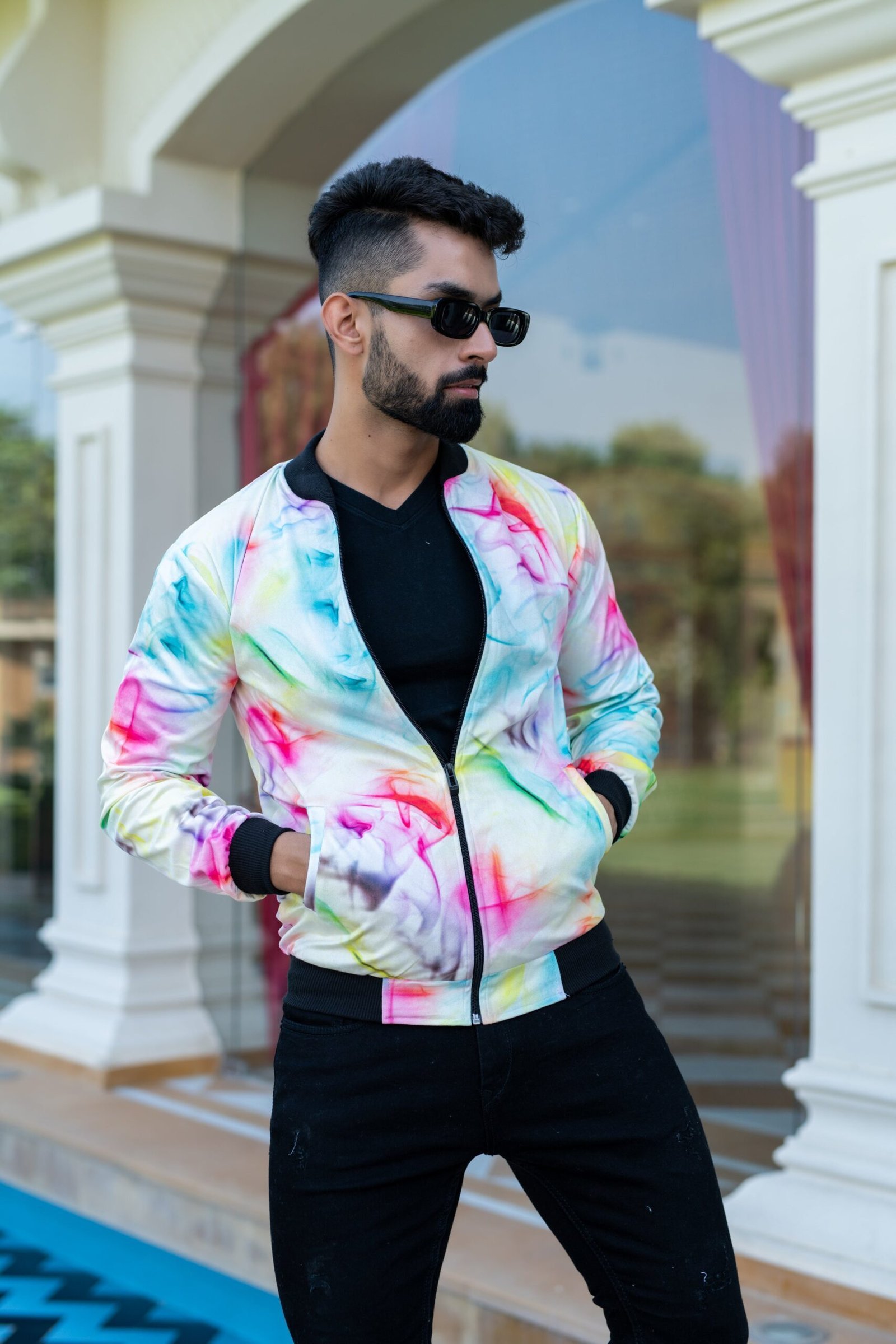 The colorful Printed Velvet Jacket has very subtle but vibrant colours printed in a unique design. The jacket, along with being very stylish, is also very comfortable. PRODUCT DESCRIPTIONFull SleevesCotton?Side Pocket Embroidered FABRIC: Velvet Colour: MulticolorFIT: Relaxed Fit Model Height: 5’10 Feet WASH CARE: Cold machine wash. For more details see the wash care label attached.