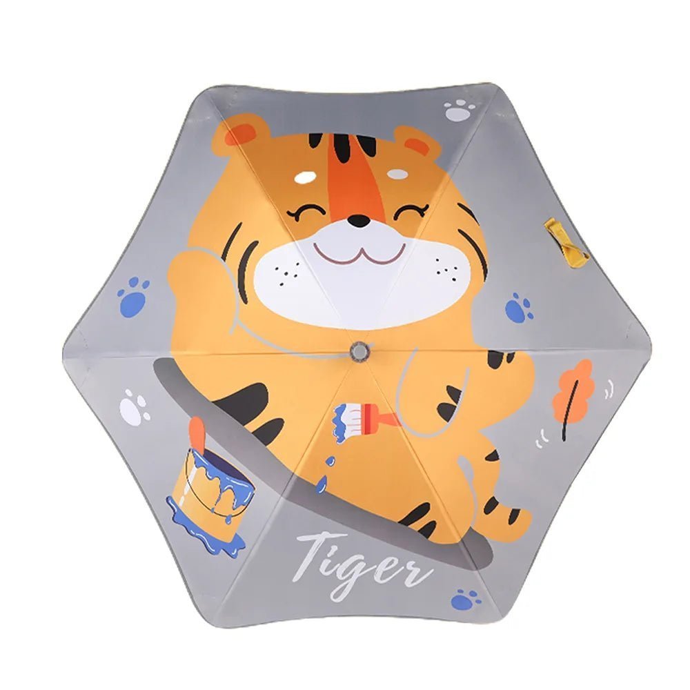 Kr Happy Tiger Print Canopy shaped umbrella for Kids, 2-6 years, Grey