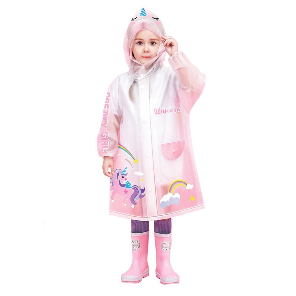 Kr Pink Unicorn print Transluscent Raincoat for Kids