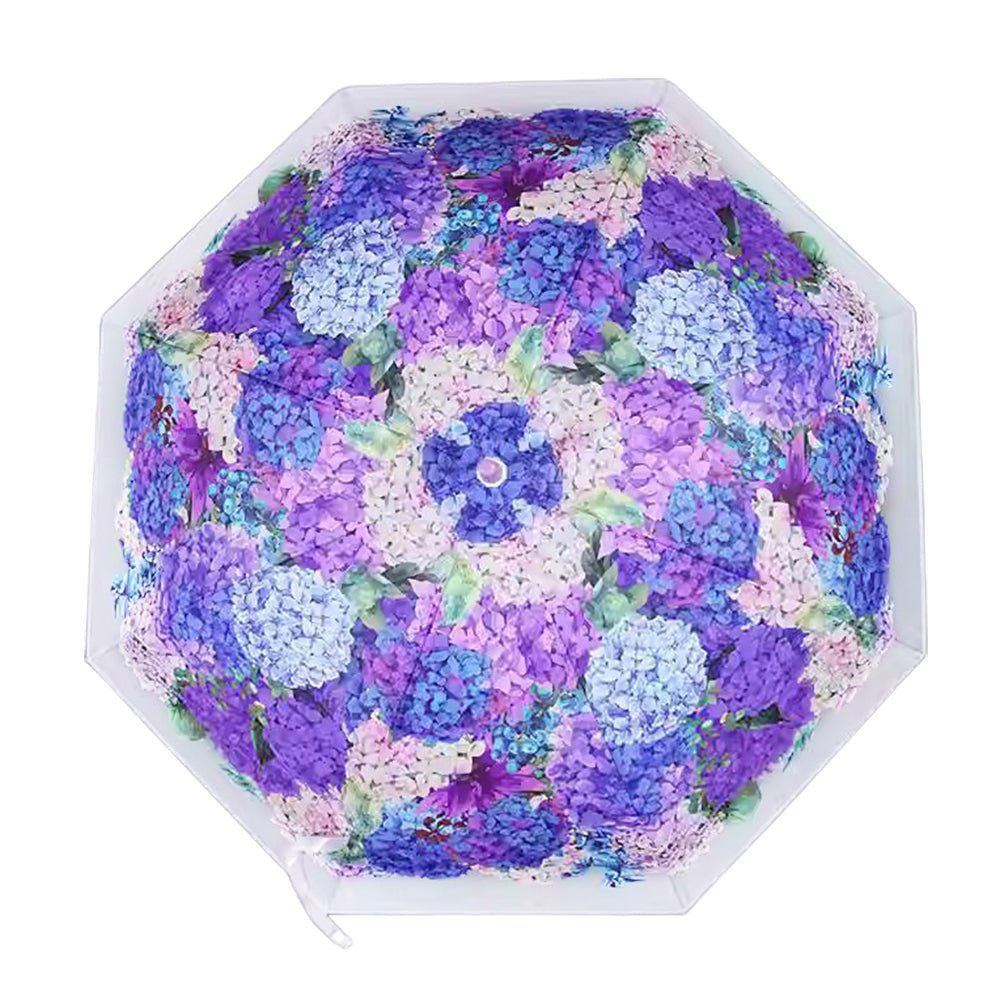 Kr Purple Hydrangea Bunch Floral Print Translucent All-season Umbrella for Kids & Adults