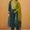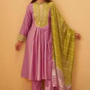 Silk Pleated Kurta Set With Lime Green Gota Patti Work