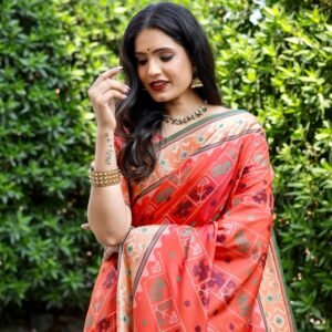 Patola Silk Orange Zari Contemporary Saree For Women