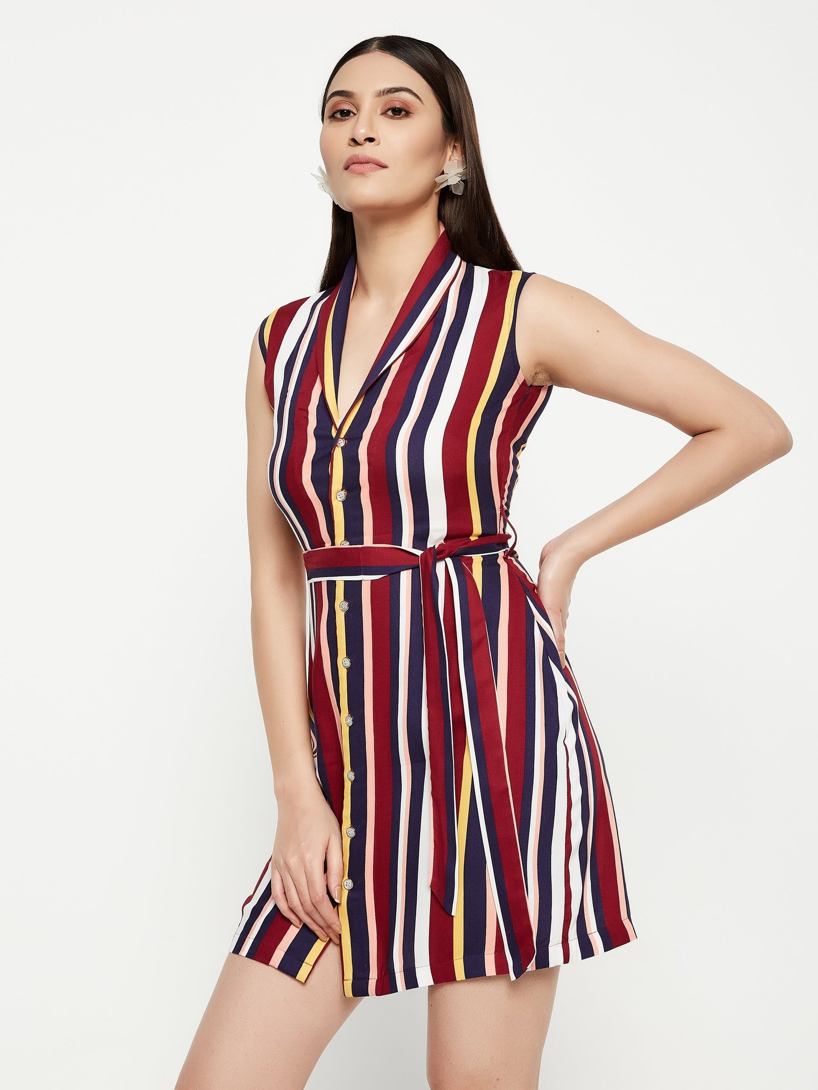 Introducing our chic and versatile straight fit mini shirt dress. Crafted with premium quality fabric, this elegant dress features a straight fit silhouette and a tie belt on the waist for a flattering touch. The sleeveless design adds a modern twist, making it perfect for day-to-night transitions.