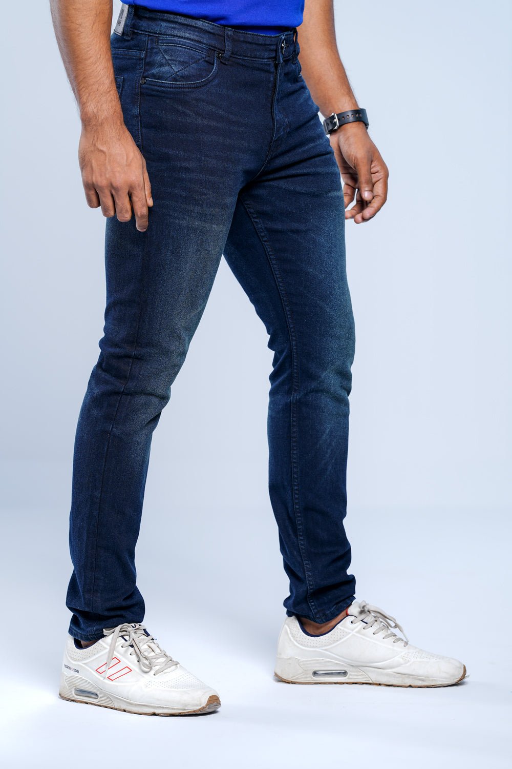Indigo fabric with coin pocket detailing and whiskering gives these stretch jeans a smart twist.