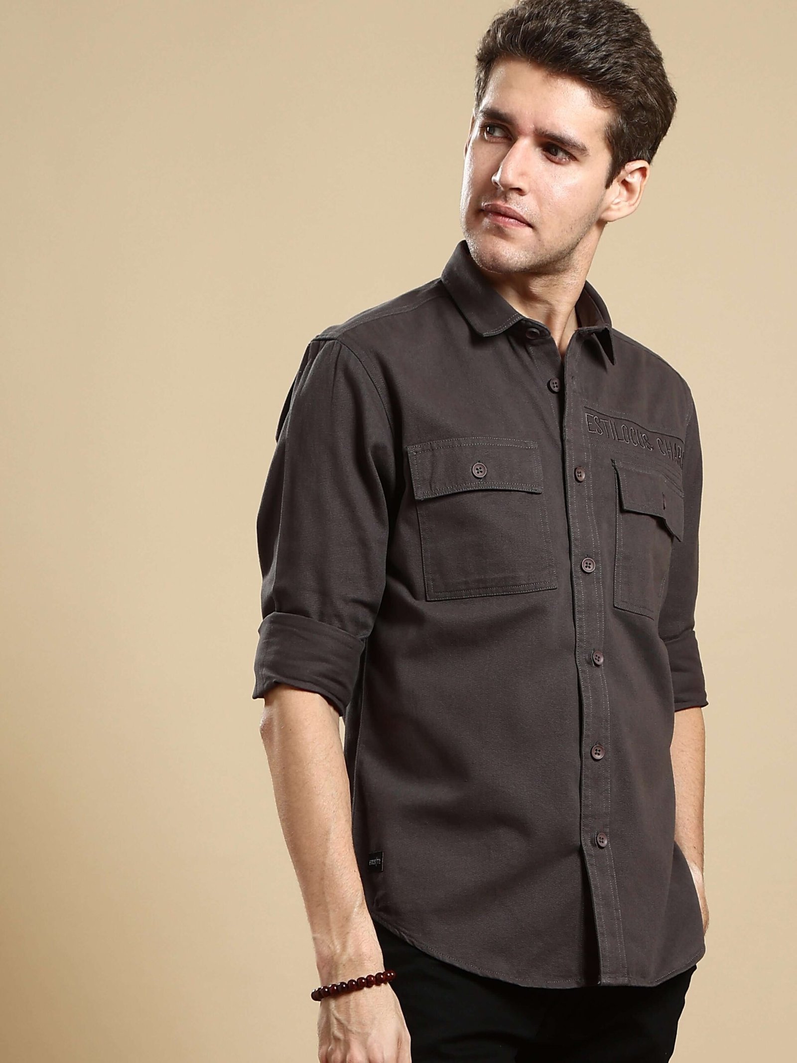Tl Dark Grey Twill Solid Cargo Shirt