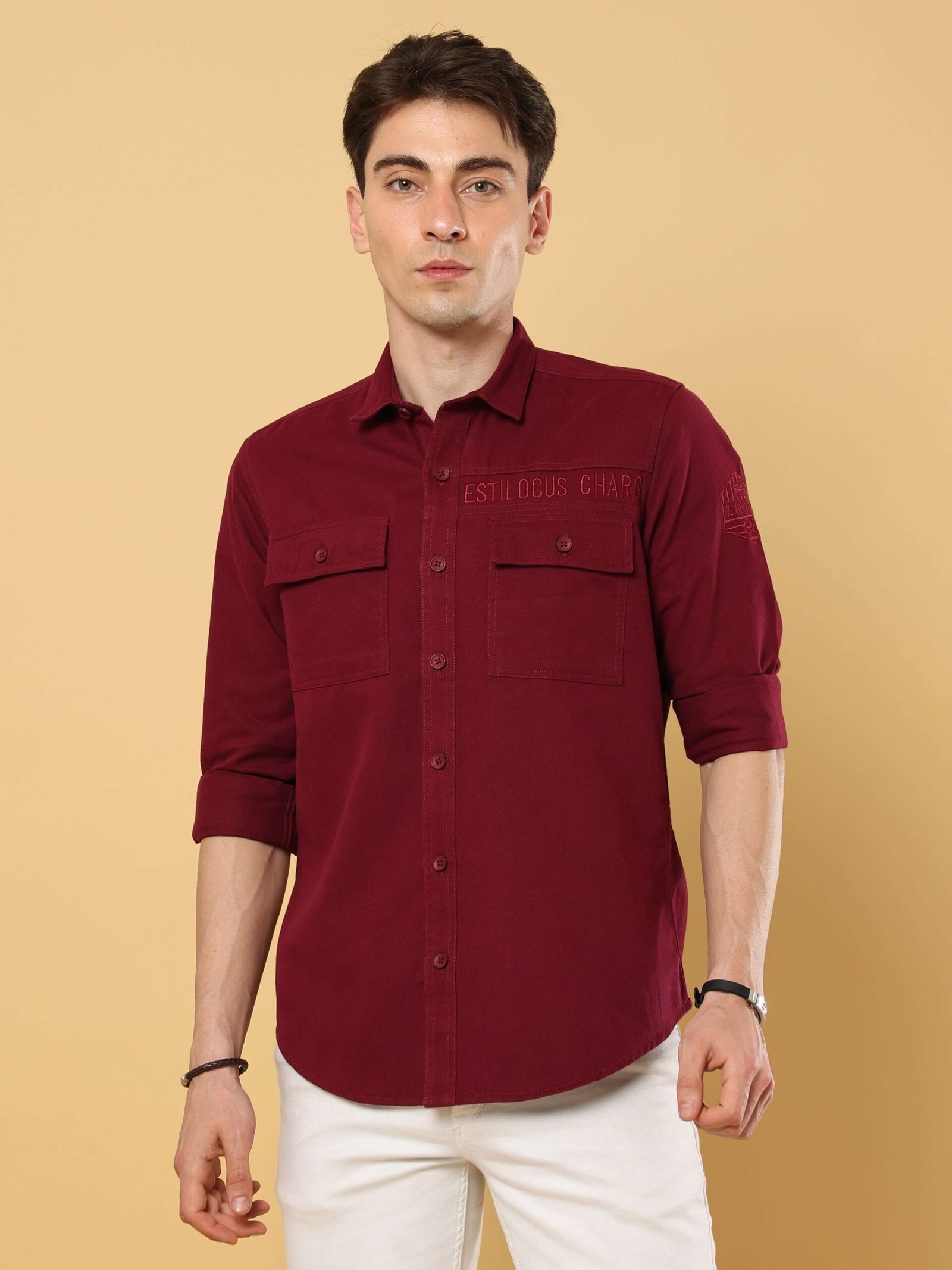 Wine Maroon Twill Solid Cargo Shirt